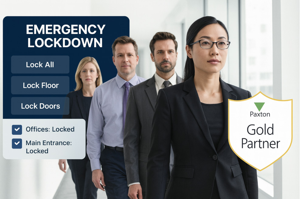 Paxton Lockdown is a specialised emergency response feature within Paxton’s access control systems, enabling organisations to quickly secure doors and zones to protect people during security threats.